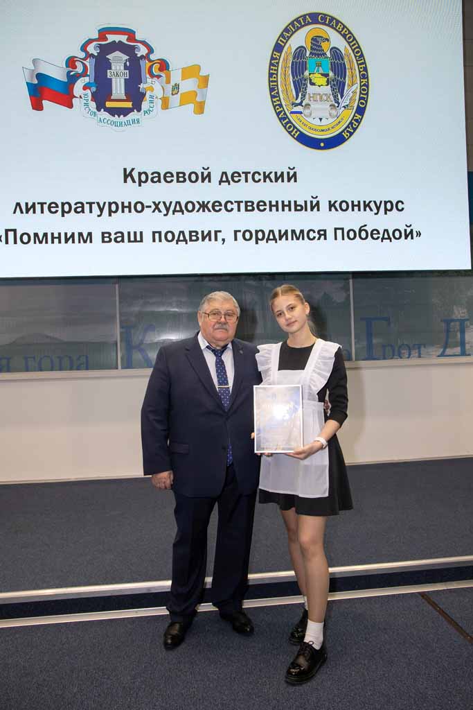 – Я много лет находился в составе жюри конкурса и помню, как он начинался, наблюдал его дальнейшее развитие, – произнес член Совета и исполнительного комитета СРО АЮР, председатель Региональной общественной организации Ставрополья «Союз генералов», председатель Общественной палаты г. Ставрополя, заслуженный юрист РФ, почетный работник прокуратуры РФ Всеволод Чернов. – Отрадно, что на протяжении стольких лет его уровень не снижается. Искренне горжусь нашими молодыми поэтами, художниками, видя, как выросло мастерство детей. Безусловно, конкурс надо продолжать, ведь его задачи – сохранять историю, передавать молодежи память о Великой Победе, знания о тех, кто защищает Россию сегодня – основополагающие для каждого человека, а для ребенка, который растет и формируется, вообще первоочередные.