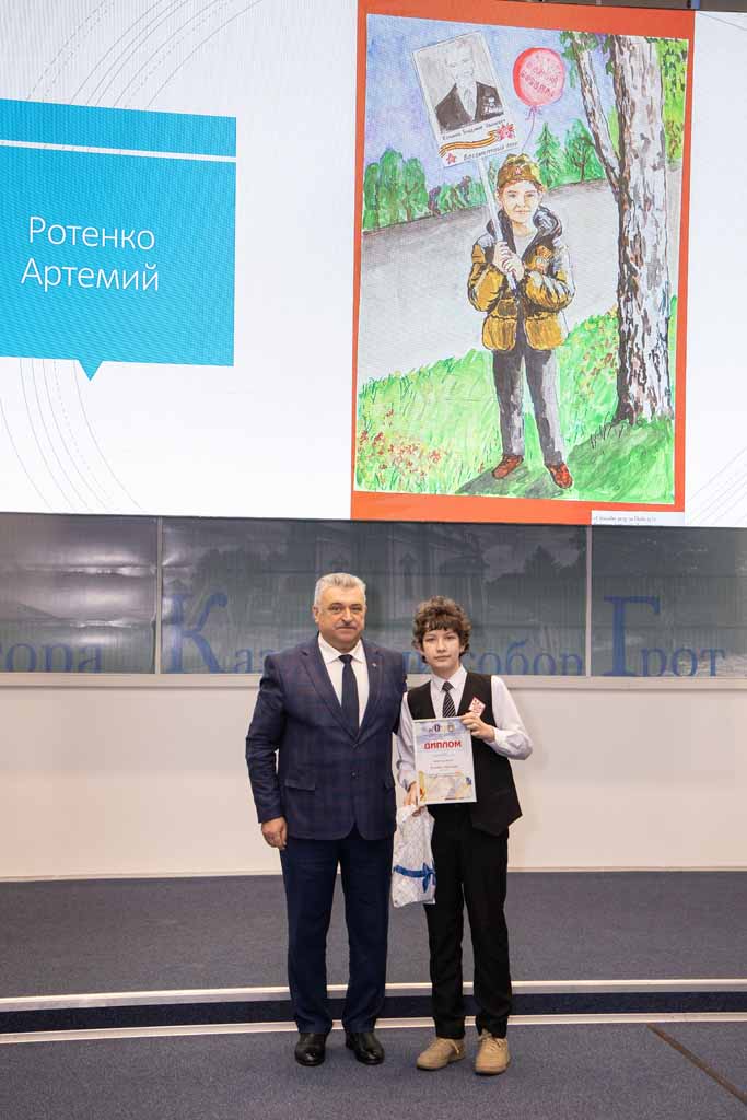 – Благодарю Николая Ивановича Кашурина и всех организаторов за праздник, который они системно проводят. Это большой труд не только с точки зрения материальных затрат, но и с точки зрения моральных, организационных ресурсов, ведь работа по его подготовке и проведению идет вне производственной деятельности. Сколько талантов открывает конкурс, это вызывает восхищение и уважение. Перед тем, как войти в зал, я посмотрел на рисунки детей и увидел в них проявление позиции, пропущенной сквозь призму отношения к нашей стране и подвигам героев, с любовью к России. Большое спасибо детям за это. А всем педагогам хочу пожелать удовольствия от успеха ребят, ведь для настоящих учителей успехи учеников дороже, чем собственные.