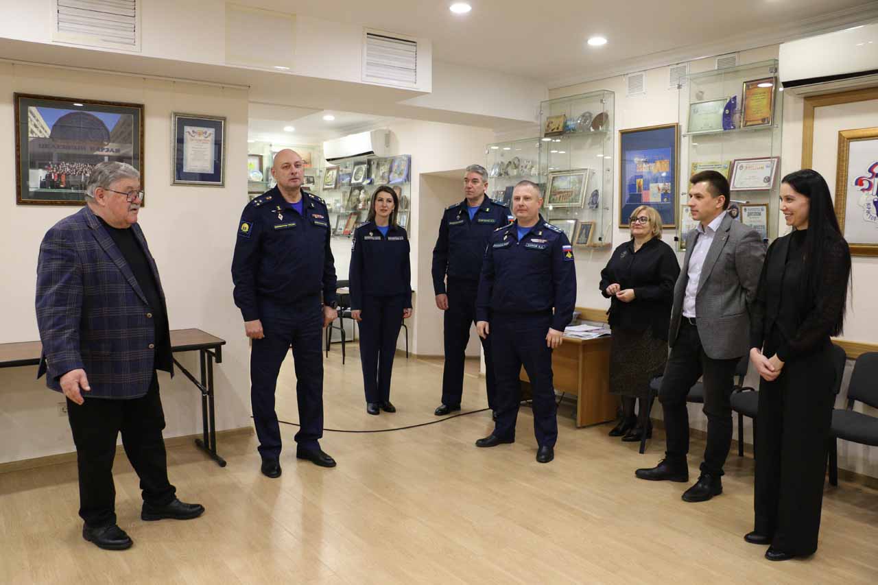 Руководитель этих институтов гражданского общества края, депутат краевой Думы, заслуженный юрист РФ Николай Кашурин встретился с начальником училища Вячеславом Преснухиным и его сотрудниками – заместителем начальника СПКУ по воспитательной работе Сергеем Шуковым, заведующим отделом воспитательной работы Ставропольского президентского кадетского училища Борисом Савченко и методистом воспитательного отдела Мариной Черномордовой.