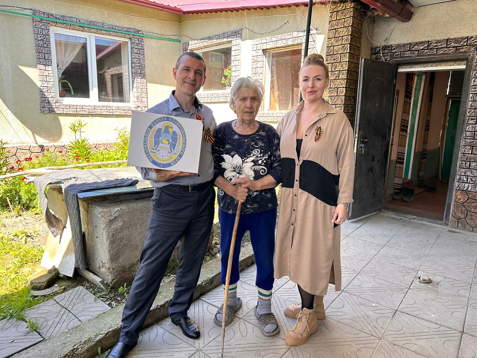 Переезжая от дома к дому, из села в село, молодые нотариусы Ставрополья проведали и поздравили с Днем Победы и пятерых военнослужащих, участников спецоперации, вручив им продуктовые наборы и ценные подарки. Кто-то из бойцов находился в отпуске, другие восстанавливались после ранений, как, например, раненый при освобождении Азовстали Владимир (имя изменено). Боевой опыт он получил еще в Чеченскую войну, и с самого начала СВО следил за новостями, сопереживая происходящему.
