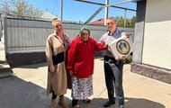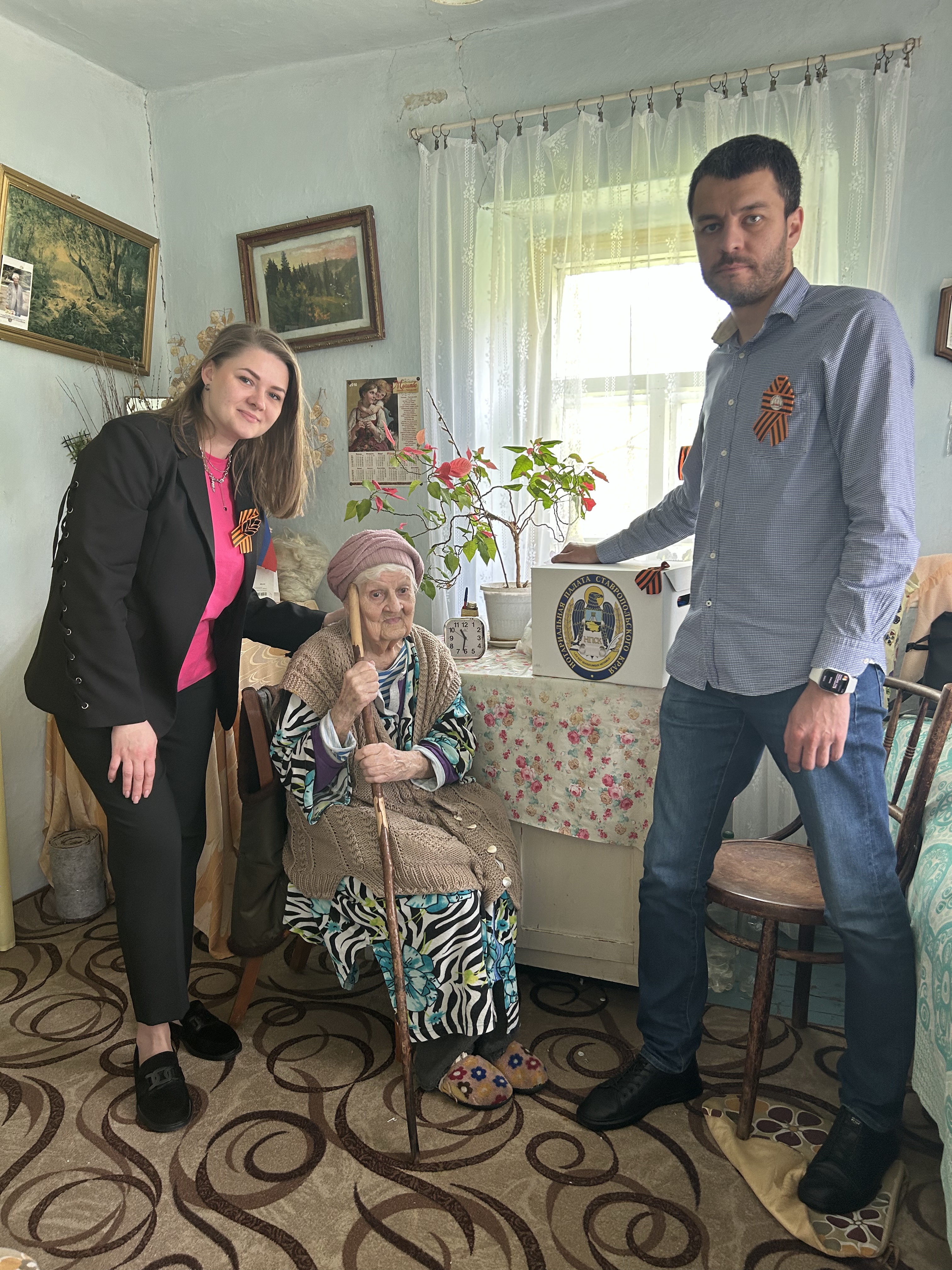 А нотариусы Елена Белова, Дарья Кименинико и Михаил Курякин проехали по четырем адресам, навестив и поздравив, в том числе Марию Васильевну Белашову в селе Новоблагодарном.